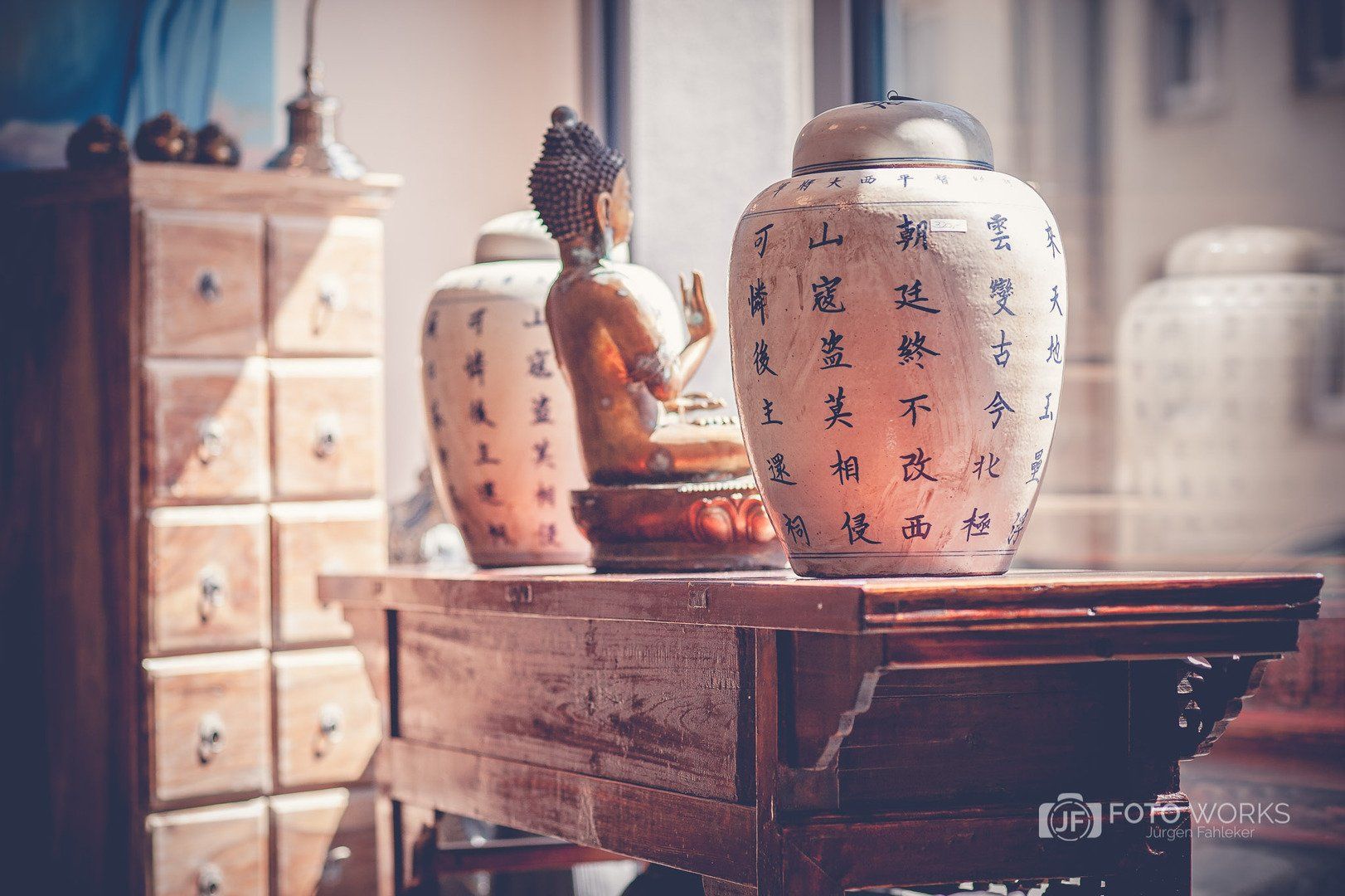 Unser Sortiment reicht vom kleinen chinesischen Glücksbringer über Kleinmöbel, wetterfeste Gartenmöbel, zahlreiche Buddha-Figuren, ganze Zimmereinrichtungen bis hin zum zwei Meter großen Terrakotta-Krieger. Die antiken, neuen oder auch maßangefertigten Möbelstücke importieren wir für Euch direkt aus Asien. Bei uns ist alles darauf ausgelegt, unseren Kunden eine speziell auf dessen Wünsche ausgerichtete Beratung sowie exzellenten Service zukommen zu lassen - einfach das gewisse Extra.